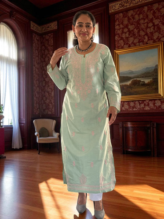 RAJASI PASTEL GREEN CHIKANKARI KURTI