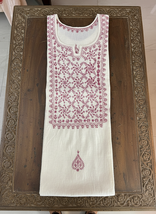 TISSUE COTTON PREMIUM HAND-EMBROIDERED CHIKANKARI KURTA -WINE