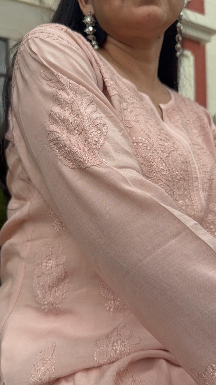 MUSLIN CHIKANKARI KURTI- DUSKY ROSE