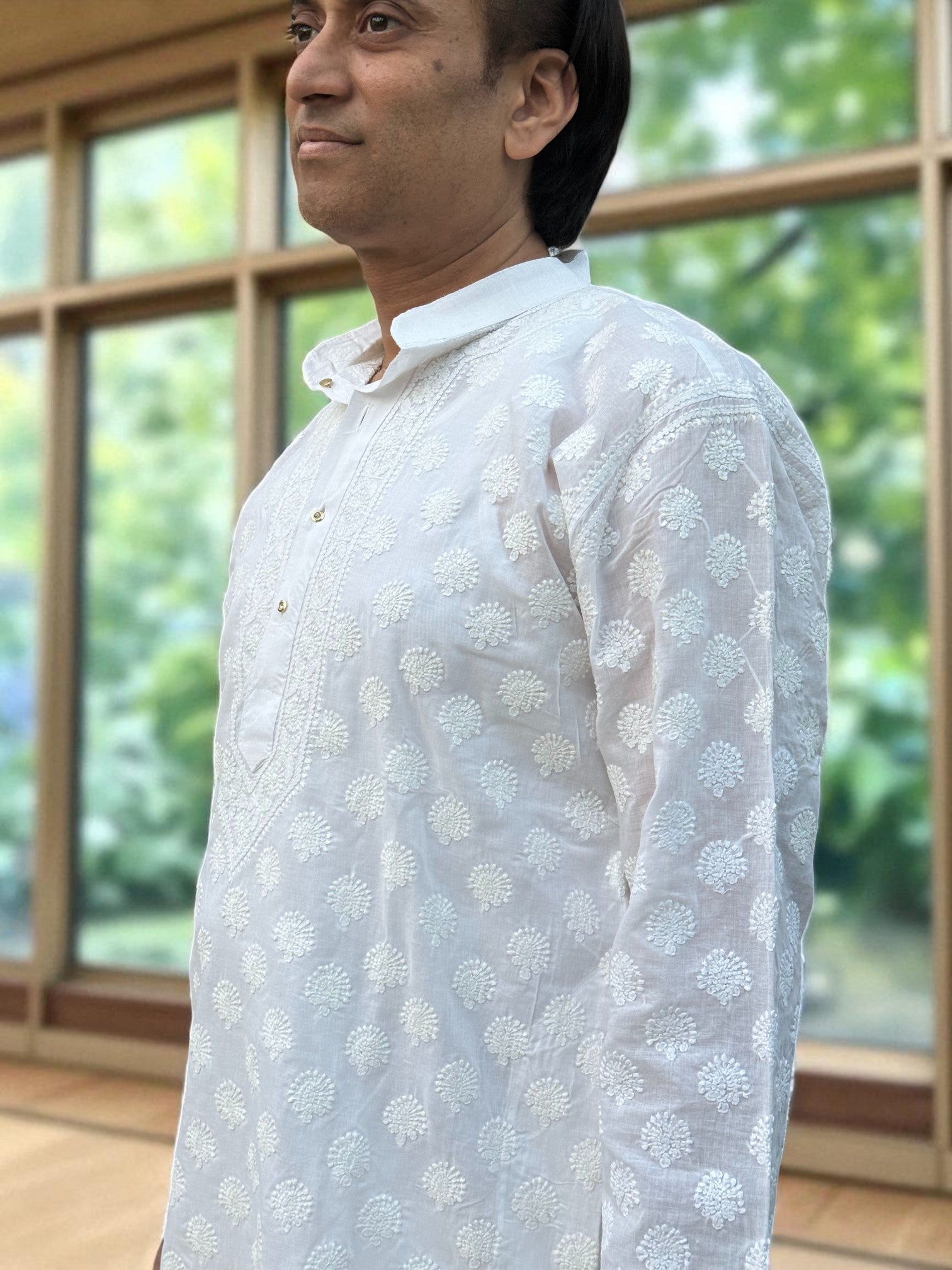 Handcrafted white Chikankari kurta in pure cotton – classic, elegant, and comfortable